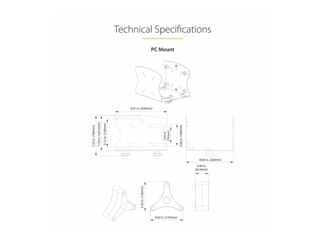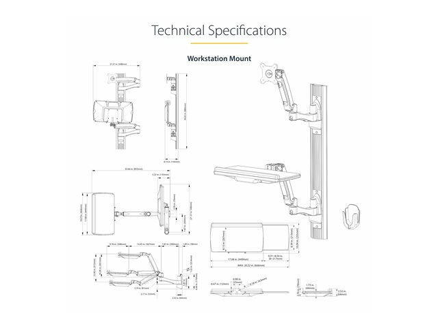 2PASTSC-WALL-MOUNT - Startech Wall Mount Workstation, VESA Mount For 32" Monitors (22lb/10kg), Fully Articulating Arms For Single Monitor Mount & Keyboard Tray, Includes Desktop Computer/PC Bracket