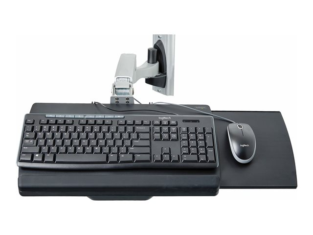 - Fully articulating arms for single monitor mount and keyboard tray