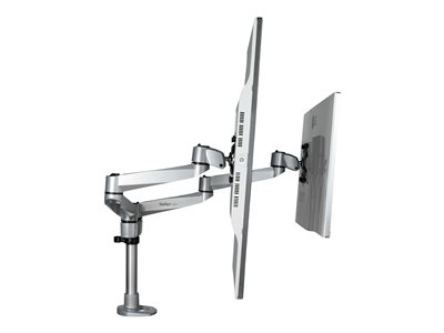 ARMDUALPS - Startech Desk Mount Dual Monitor Arm, Premium Articulating Monitor Arm, up to 27" VESA Mount Displays, Height Adjustable Monitor Mount, Rotating/Swivel/Tilt, Desk Clamp/Grommet, Silver